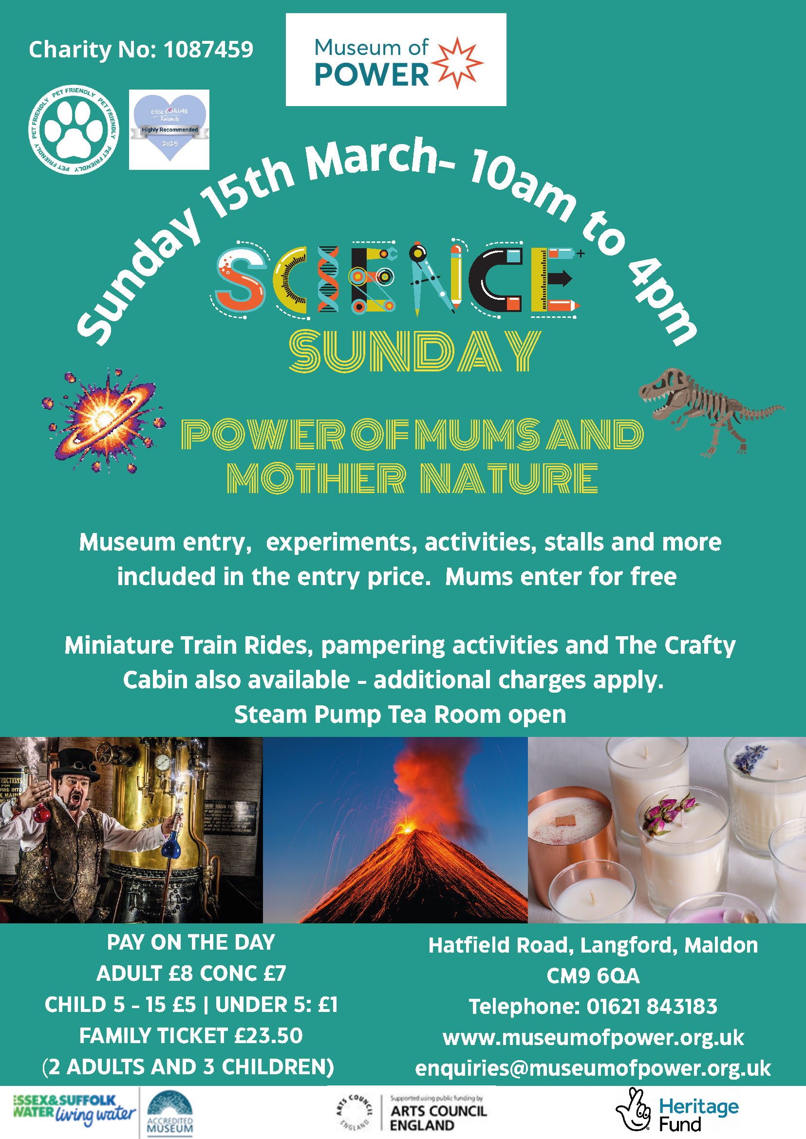 Our Langford & Beeleigh Miniature Railway runs, with the Astaria Model Village and Steam Pump Tea Room both open.