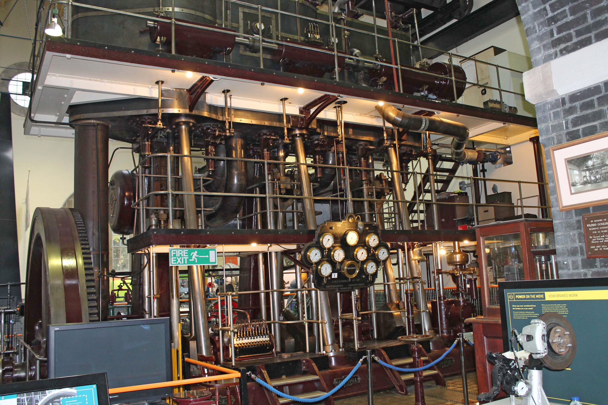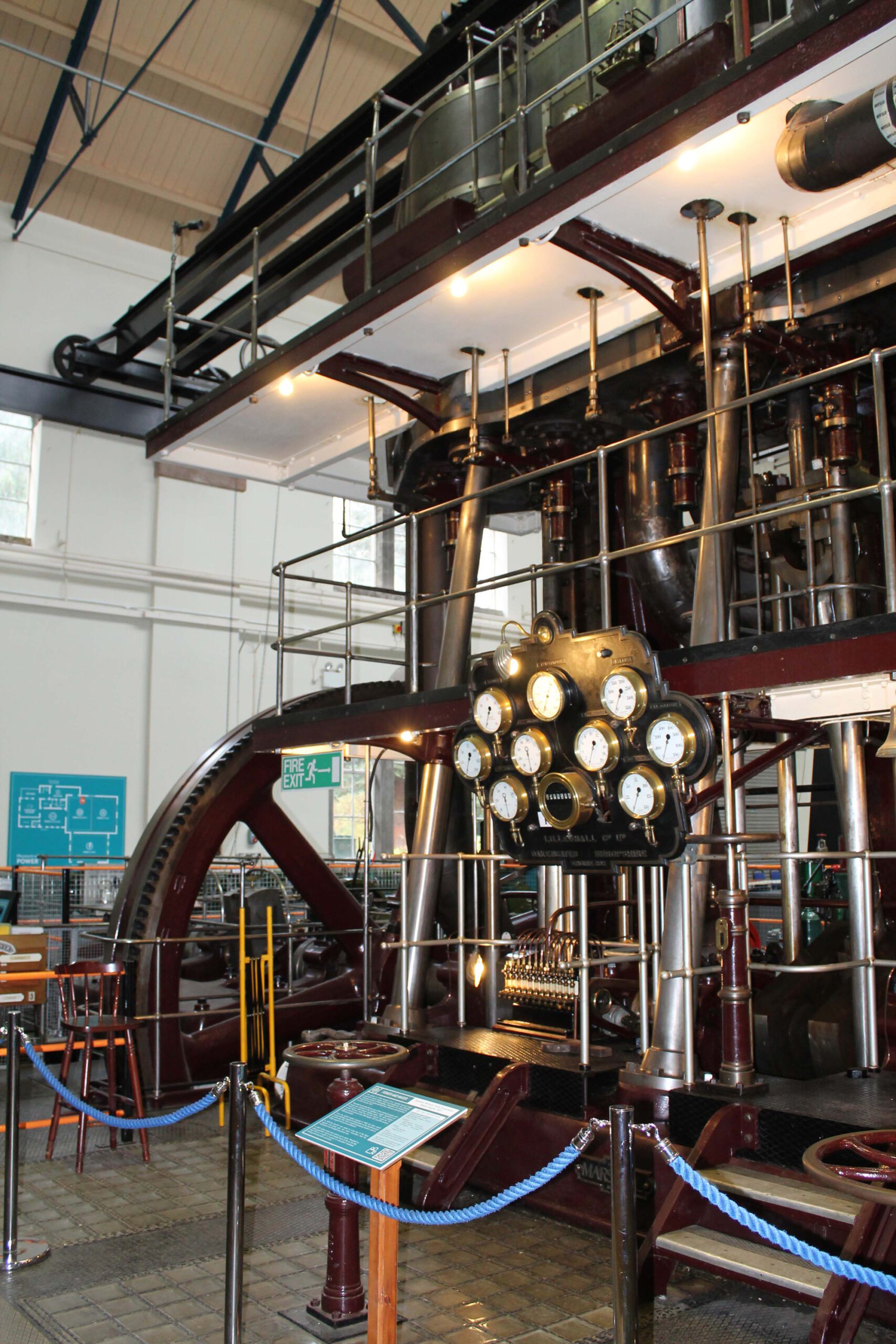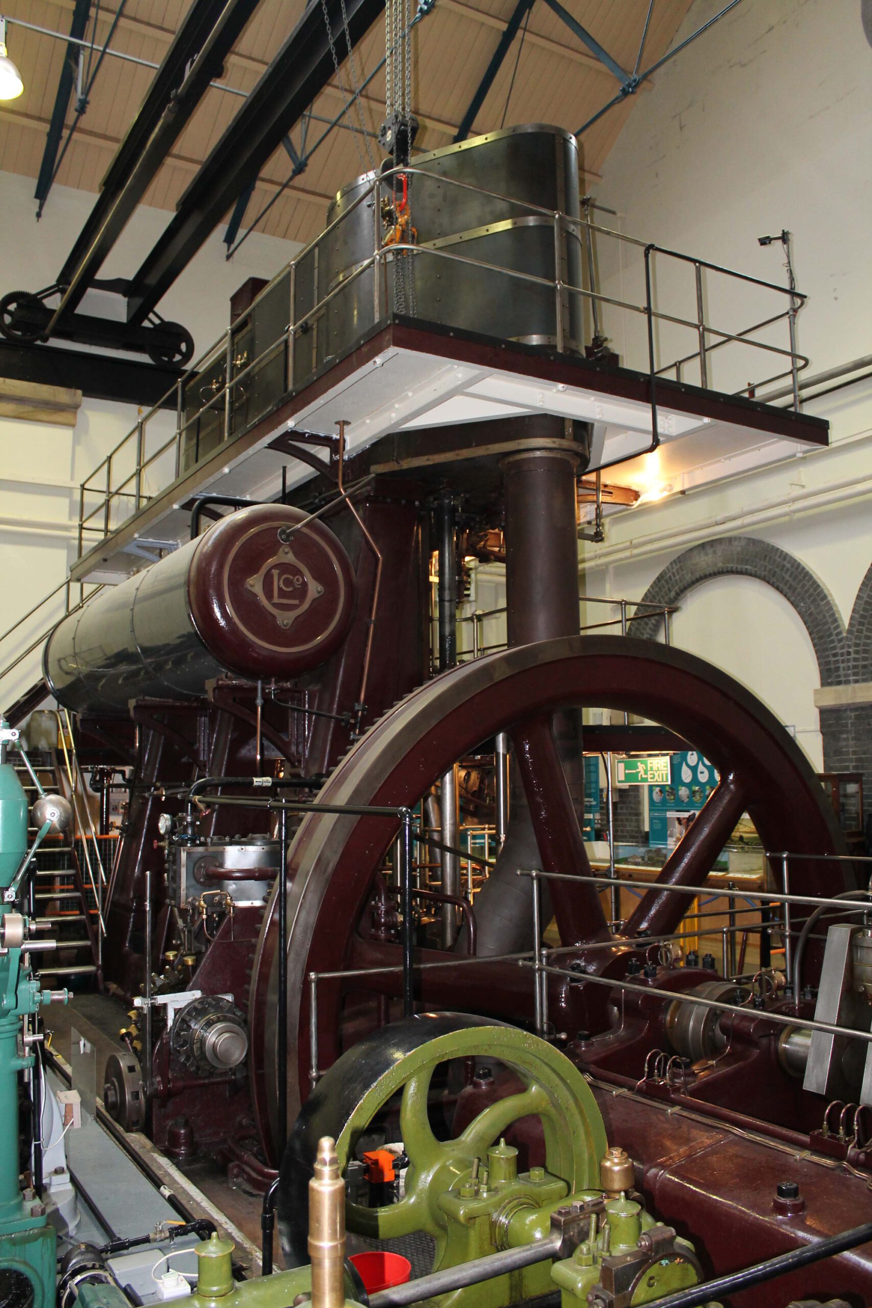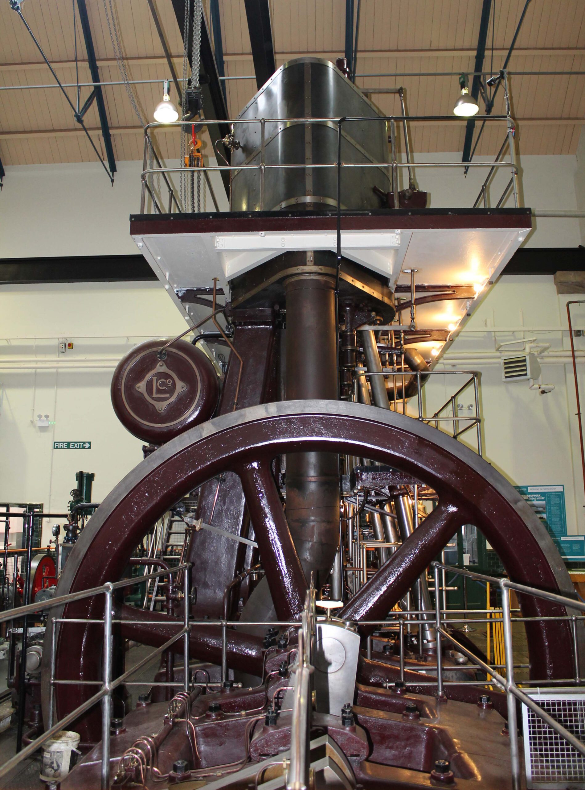 The engine has three cylinders, with bores of 20 inches (508 mm) diameter (high pressure), 35 inches (889 mm) diameter (intermediate pressure) and 56 inches (1,422 mm) diameter (low pressure). The stroke is 42 inches (1,067 mm). Each piston rod is 5 inches (127 mm) diameter. The steam cylinders are double-acting and are fitted with drop valves for both steam inlet and exhaust.